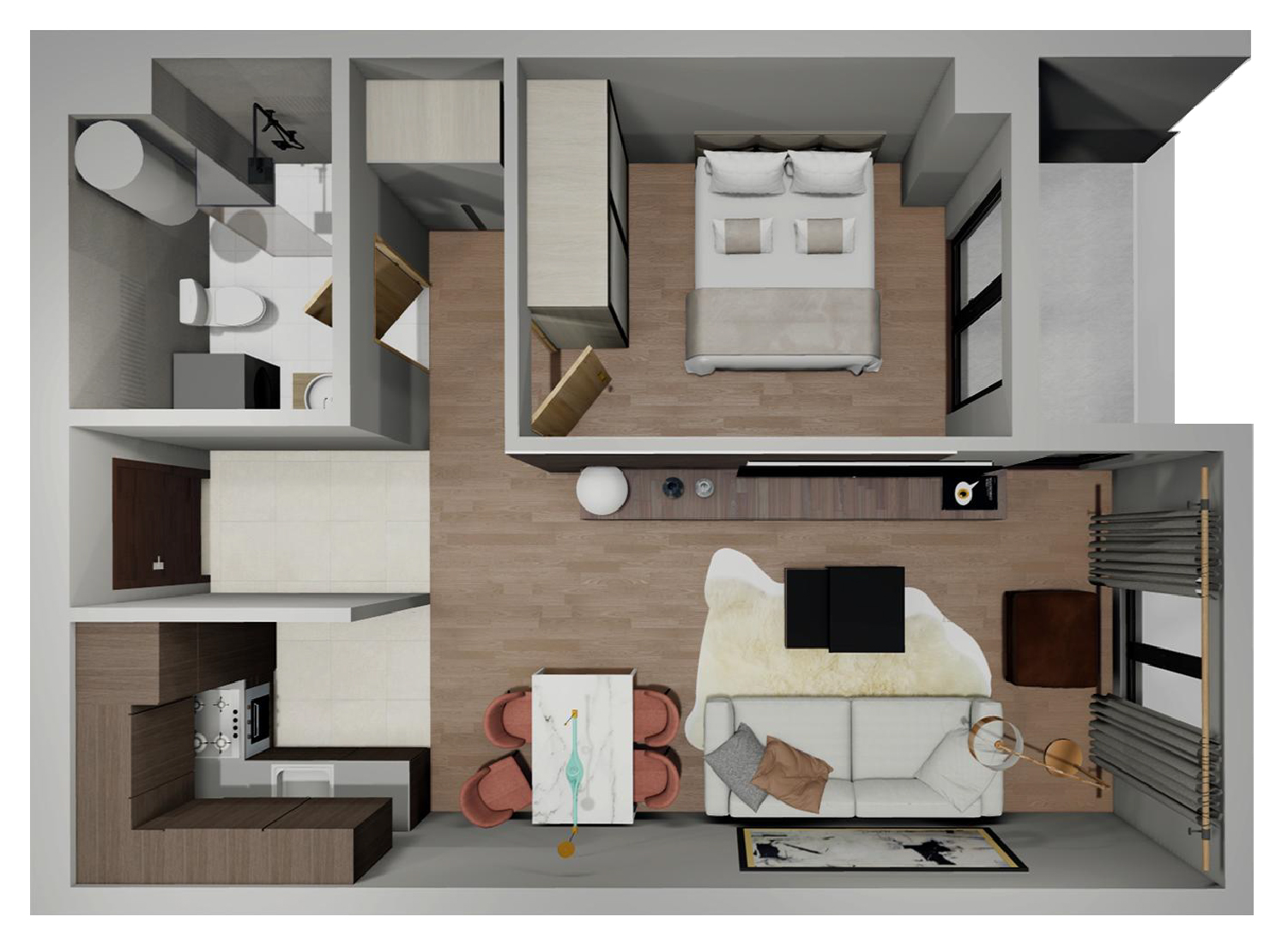 Стан бр. 3.21 Влезен хол 2.53 m² Кујна 3.70 m² Дневен престој 22.05 m² Бања 4.11 m² Спална соба 9.16 m² Тераса 3.05 m² вкупна квадратура 3.05 m² Резервирај термин Резервирај термин